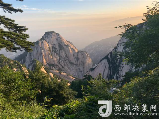 華山主峰以其“山堯太華府咸京”之勢(shì), “挺拔峻秀賽四岳”之態(tài), “位居祖國(guó)搖籃黃河濱岸”之美和“自古華山一條路”之奇而著稱于世。由華山山腳下眺望諸峰,如百仞壁立,刀劈斧削,挺拔峻秀,更有千尺幢、百尺峽、蒼龍嶺等險(xiǎn)道歷歷在目。各峰異態(tài),層戀疊翠,雄偉壯觀。尤其是東、南、西、中四峰呈較規(guī)則的平行四邊形柱體,以400~500 m 的高度聳立于周圍群峰之上, 猶如千峰捧岳。