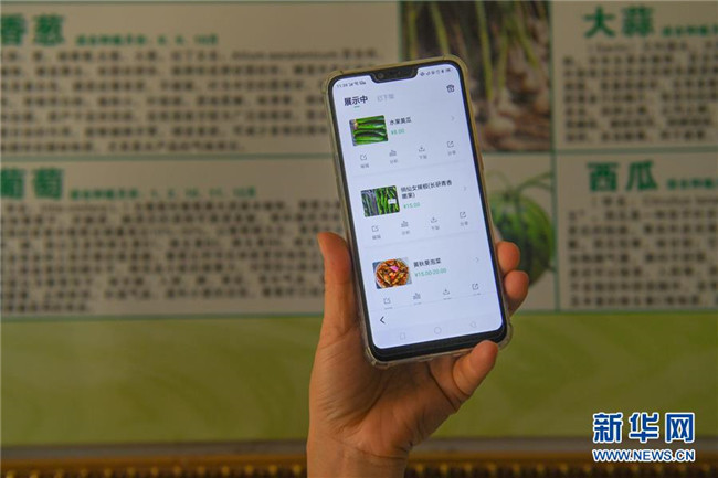 6月4日,在湘潭市雨湖區(qū)鶴嶺鎮(zhèn)龍安村,湘潭市仙女蔬菜產銷專業(yè)合作社的工作人員展示農產品的微信購買頁面。新華社記者 陳澤國 攝