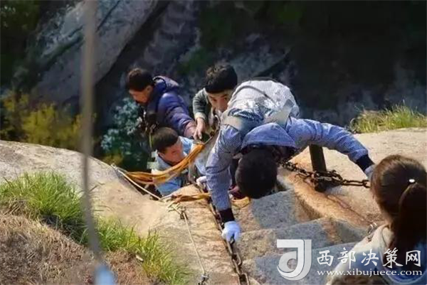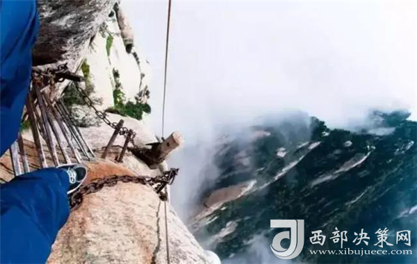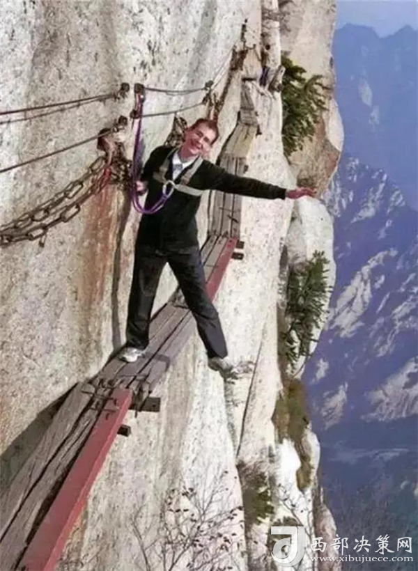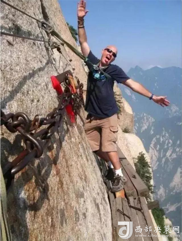 喜歡攀巖徒步,似乎是很多老外的一種標(biāo)志性運動。幾個熱愛徒步攀巖的老外,在華山的棧道上擺pose,挑戰(zhàn)這種世界上最危險的徒步棧道。
