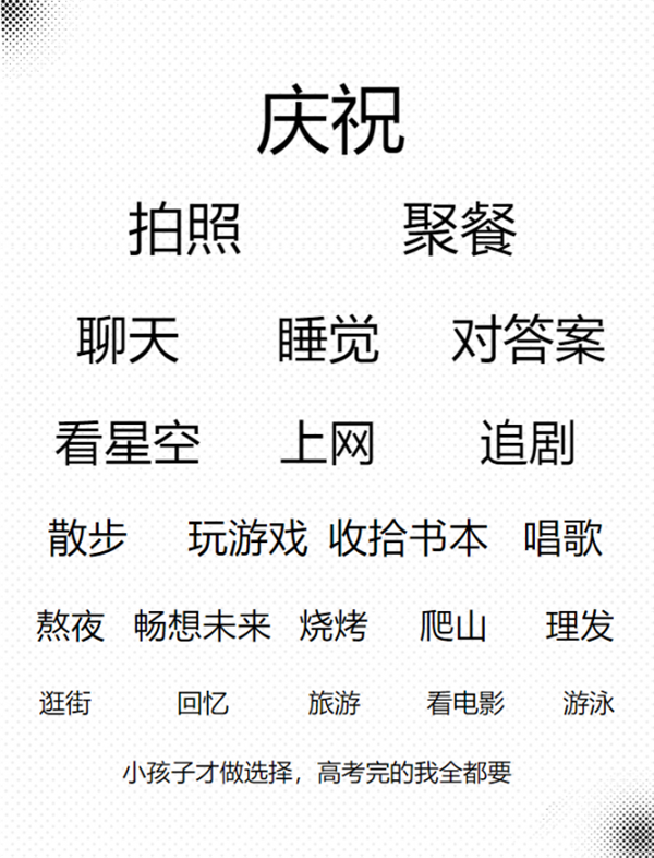 考完的那個(gè)晚上,有人躺在床上踏踏實(shí)實(shí)地睡到自然醒;也有人和朝夕相處的同學(xué)吃一頓“散伙飯”。還記得高考結(jié)束那晚,你是怎么過(guò)的嗎?