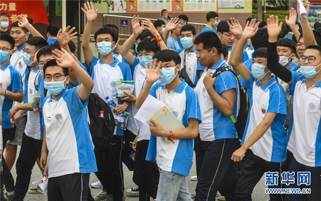 7月8日,在福建省福州教育學(xué)院附屬中學(xué)考點(diǎn),考生和同學(xué)揮手告別。 當(dāng)日,全國(guó)部分地區(qū)2020年高考結(jié)束。 新華社記者 宋為偉 攝
