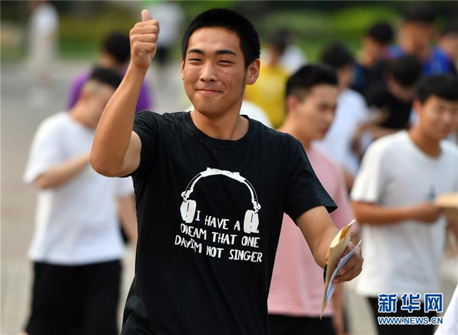 7月8日,考生在寧夏銀川市第二中學(xué)考點(diǎn)留影。 當(dāng)日,全國(guó)部分地區(qū)2020年高考結(jié)束。 新華社記者 馮開(kāi)華 攝