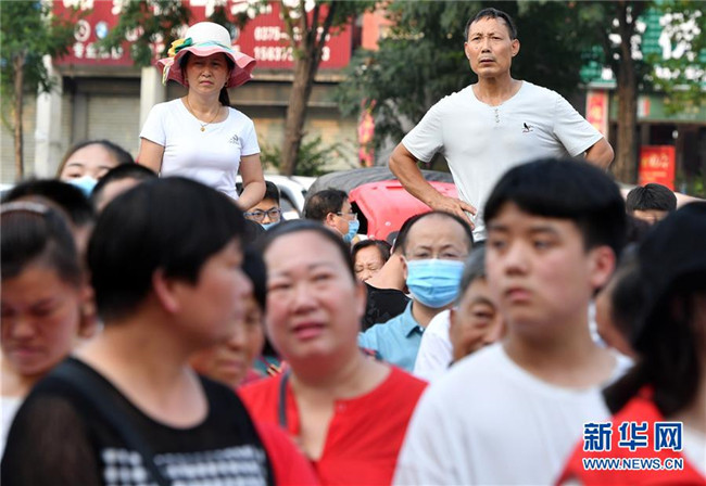 7月8日,在河南省寶豐縣第一高級(jí)中學(xué)考點(diǎn),家長(zhǎng)在考場(chǎng)外等候考生。 當(dāng)日,全國(guó)部分地區(qū)2020年高考結(jié)束。 新華社記者 李嘉南 攝