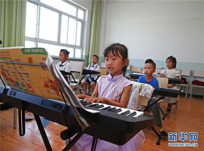 7月22日,學(xué)生在石嘴山市大武口區(qū)青少年學(xué)生校外活動(dòng)中心音樂教室內(nèi)練習(xí)電子琴。新華社記者 賈浩成 攝