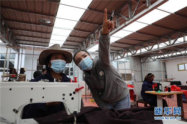 7月23日,在甘肅省甘南藏族自治州夏河縣??奇?zhèn)崗岔村的扶貧車間內(nèi),卓瑪吉(前右)和制衣工人在交流。崗岔村是甘肅省甘南藏族自治州夏河縣??奇?zhèn)的一個牧業(yè)村,平均海拔3000米以上。2018年,在夏河縣文明辦工作的卓瑪吉開始擔任駐村幫扶工作隊隊長,每年都有200多天待在草原上。兩年來,卓瑪吉帶領大家開辦扶貧車間,發(fā)展特色產(chǎn)業(yè),聯(lián)系勞務輸出。為了讓村民更全面地了解精準扶貧政策,卓瑪吉登門宣講政策。為了提高村容村貌,卓瑪吉發(fā)動大家開展廁所革命和庭院環(huán)境評比,積極響應甘南藏族自治州“全域無垃圾”創(chuàng)建行動。她還從縣城請來醫(yī)生,為村民舉辦健康講座,在全村婦女中開展“兩癌篩查”。如今,崗岔村變成了干凈、整齊、富裕、美麗的生態(tài)文明村,提前實現(xiàn)了整村脫貧。談起心愿,卓瑪吉說:“要讓草原和草原上的人都變得更美。”新華社發(fā)(杜哲宇攝)
