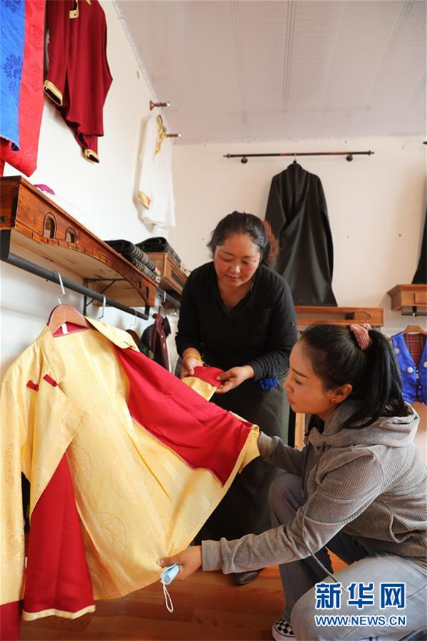 7月23日,在甘肅省甘南藏族自治州夏河縣??奇?zhèn)崗岔村的扶貧車間內(nèi),卓瑪吉(右)和扶貧車間負責人研究成衣款式。崗岔村是甘肅省甘南藏族自治州夏河縣??奇?zhèn)的一個牧業(yè)村,平均海拔3000米以上。2018年,在夏河縣文明辦工作的卓瑪吉開始擔任駐村幫扶工作隊隊長,每年都有200多天待在草原上。兩年來,卓瑪吉帶領大家開辦扶貧車間,發(fā)展特色產(chǎn)業(yè),聯(lián)系勞務輸出。為了讓村民更全面地了解精準扶貧政策,卓瑪吉登門宣講政策。為了提高村容村貌,卓瑪吉發(fā)動大家開展廁所革命和庭院環(huán)境評比,積極響應甘南藏族自治州“全域無垃圾”創(chuàng)建行動。她還從縣城請來醫(yī)生,為村民舉辦健康講座,在全村婦女中開展“兩癌篩查”。如今,崗岔村變成了干凈、整齊、富裕、美麗的生態(tài)文明村,提前實現(xiàn)了整村脫貧。談起心愿,卓瑪吉說:“要讓草原和草原上的人都變得更美。”新華社發(fā)(杜哲宇攝)