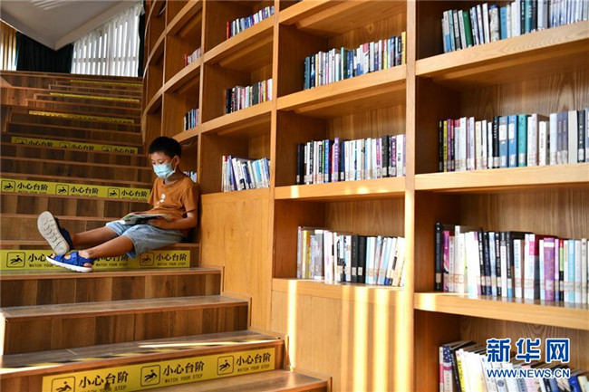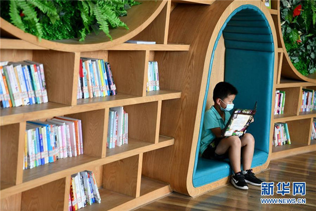 8月24日,小朋友在合肥市廬陽(yáng)區(qū)悅書(shū)房·杏花書(shū)院里閱讀。新華社記者劉軍喜攝