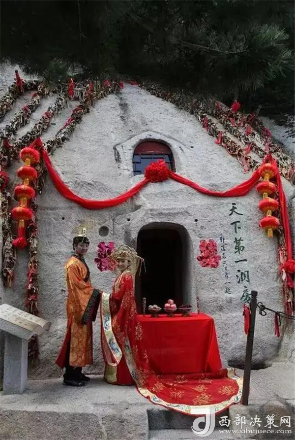 相傳春秋時(shí)期在華山修行的吹簫人簫史和秦穆公的女兒弄玉就是在華山西峰鑿洞成婚,“洞房”一詞由此誕生。天下第一洞房位于華山西峰東側(cè)半腰,從蓮花橋經(jīng)十八譚登山路的左側(cè)即達(dá),多少年來(lái),一對(duì)對(duì)相濡以沫的夫妻,一雙雙初次相識(shí)的戀人,攜手并肩,登頂華山,汲西峰洞房瑞氣,沐東峰朝陽(yáng)祥光,恩恩愛(ài)愛(ài)漫步人生幸福路。