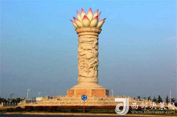這張圖是生態(tài)廣場的寶蓮燈城雕,全景鏡頭下的平面圖片,則抬高了整個基座,顯得“仙氣十足”,整個寶蓮燈高28米,用大理石為材質雕成的巨大燈體。雕塑基座四周鑲有8副浮雕,圍繞“劈山救母”的故事而展開。
