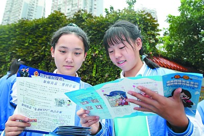 9月15日,四川省內江市東興初級中學學生正在閱讀網(wǎng)絡安全宣傳資料。蘭自濤攝/光明圖片