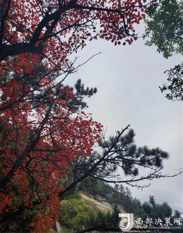 行走在華山的秋,從山腳到山巔,但見赤松蒼翠、霜染紅葉、黃葉飛舞、秋花淡紫……層林盡染,五彩繽紛,像是穿行在印象派畫家的巨幅油畫中。