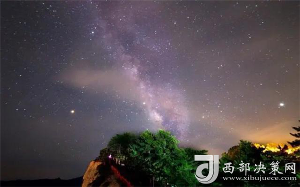 夜色華山,是一幅時間與空間的交錯,而其中最吸引人的是華山最美三色的變幻,那就是:賞星空、觀日出、看山色。繁多的星光,滿山的燈光,將華山映襯得一派柔和,這里的夜屏蔽了城市的喧囂與繁華,有著不屬于城市的寧靜與美麗。