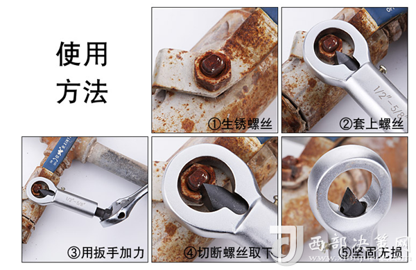 據(jù)井下工人反饋,該工具使用方法非常簡(jiǎn)單,只需選擇孔徑合適的螺母分離器套在銹死的螺母上,然后用扳手夾禁尾部六方頭,順時(shí)針旋轉(zhuǎn)六角轉(zhuǎn)頭,使得尖刀頭切入螺母內(nèi),這時(shí)就解決了滑絲的問題,可以拆卸螺母,如果還是拆不下來,則繼續(xù)旋轉(zhuǎn)轉(zhuǎn)頭,直接把螺母切斷。