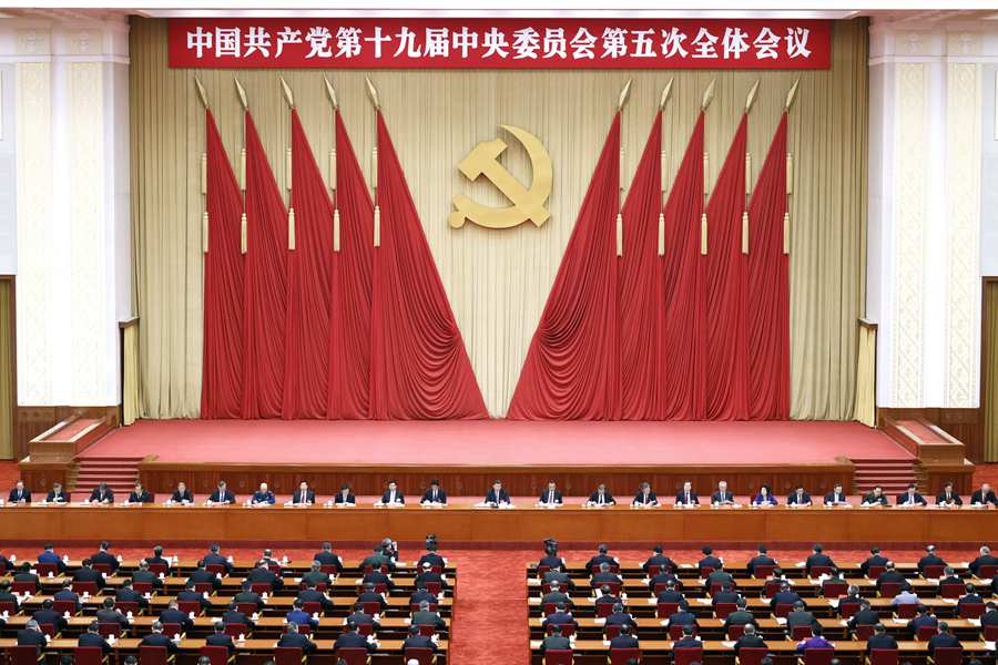 中國共產(chǎn)黨第十九屆中央委員會第五次全體會議,于2020年10月26日至29日在北京舉行。中央政治局主持會議。 新華社記者 殷博古 攝
