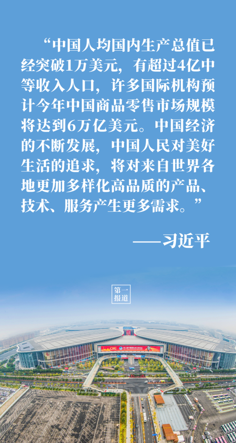 “中國的發(fā)展離不開世界,世界的繁榮也需要中國。”談到中國大市場蘊藏的大機(jī)遇,習(xí)主席用事實和數(shù)據(jù)說話: