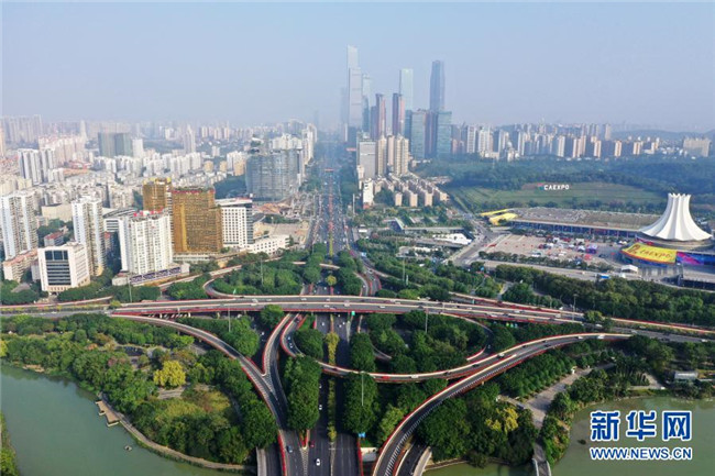 這是南寧國際會展中心及周邊建筑(11月26日攝,無人機照片)。新華社記者 陸波岸 攝