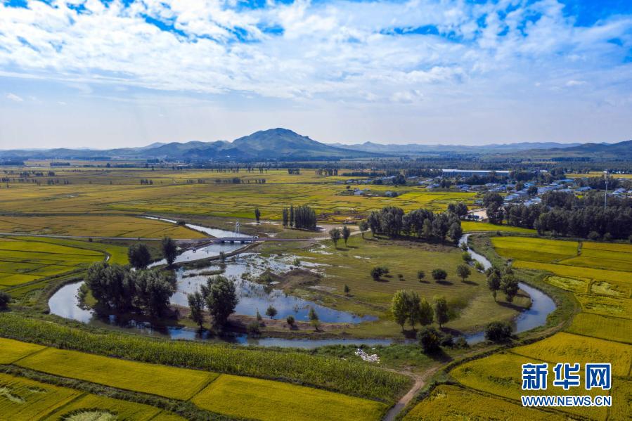 內(nèi)蒙古烏蘭浩特市三合村的稻田(9月5日攝)。 新華社發(fā)(畢力格 攝)