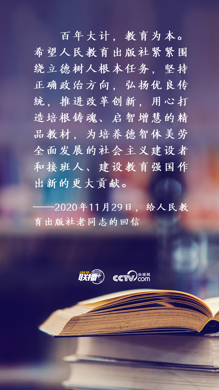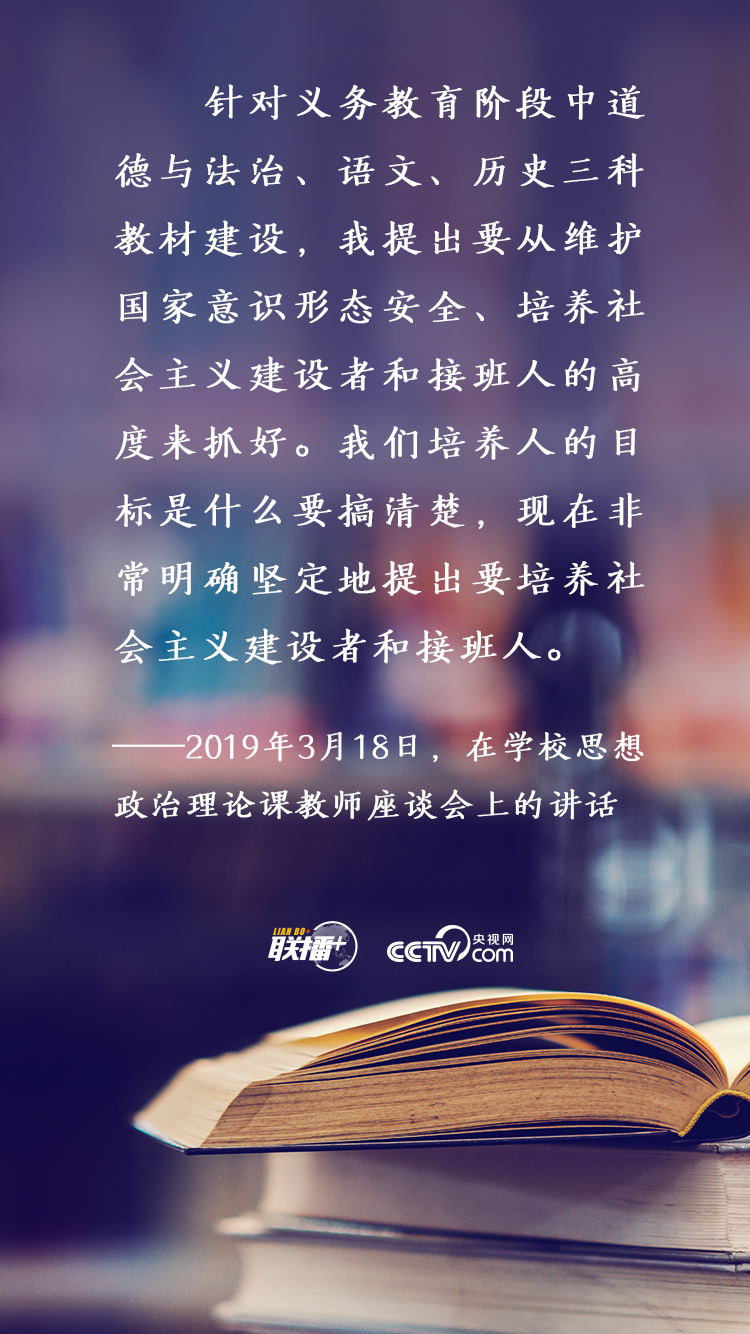 百年大計,教育為本。習近平總書記一貫高度重視培養(yǎng)社會主義建設者和接班人,不止一次對教材編研出版工作提出殷切期望。央視網(wǎng)《聯(lián)播+》為您梳理總書記有關(guān)精彩論述,與您一起學習領(lǐng)悟。