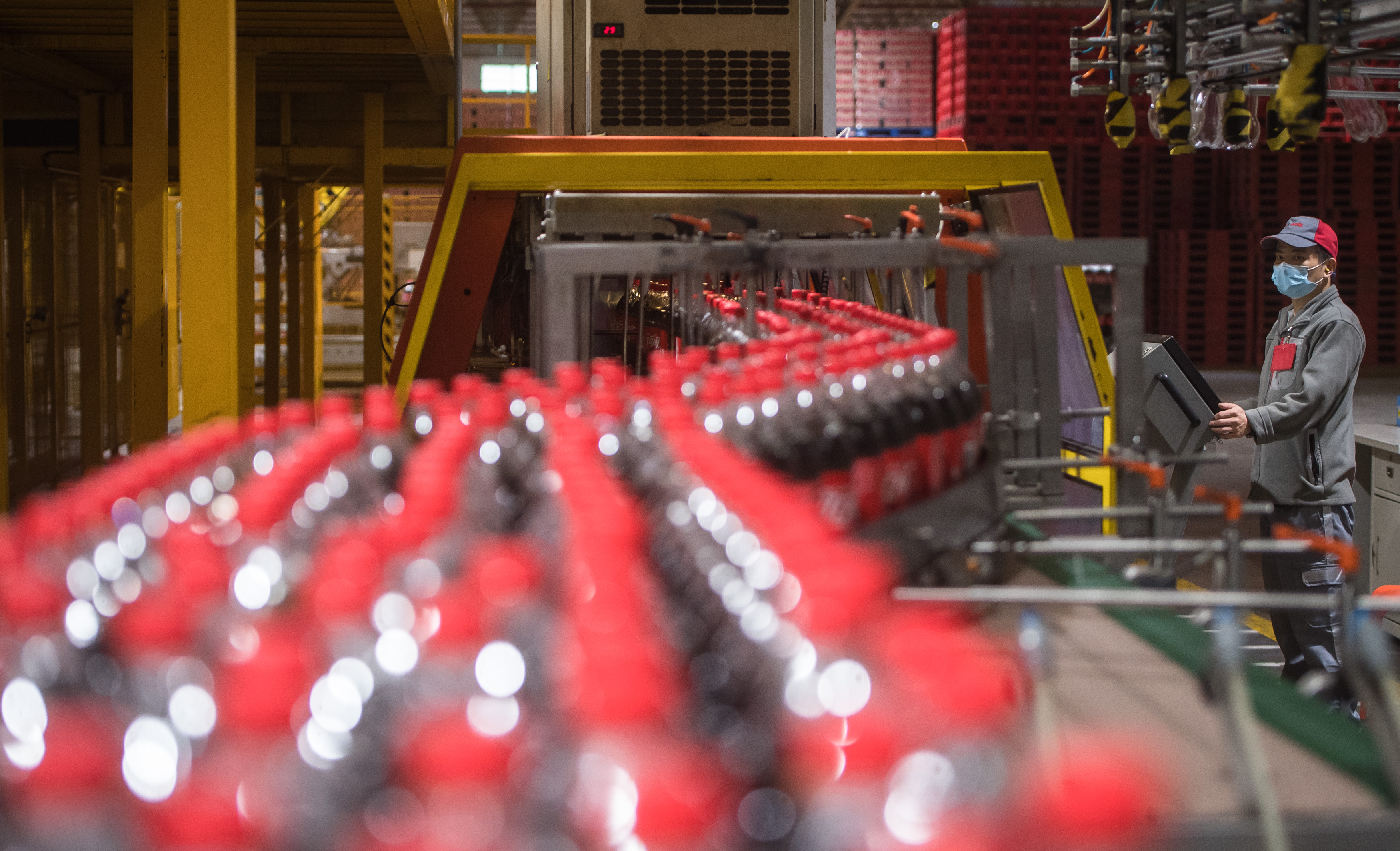 3月24日,工人在復(fù)工復(fù)產(chǎn)的湖北太古可口可樂(lè)飲料有限公司流水線上作業(yè)。新華社記者 肖藝九 攝