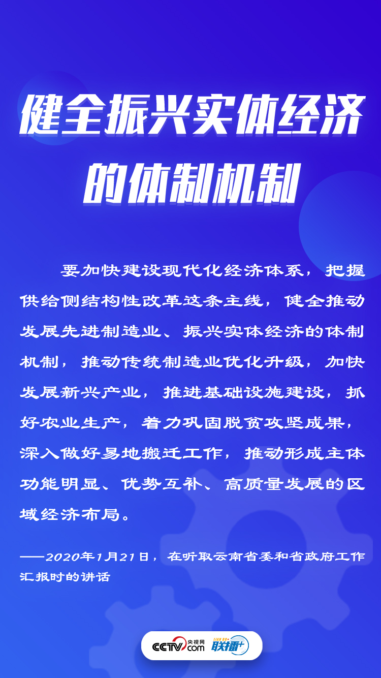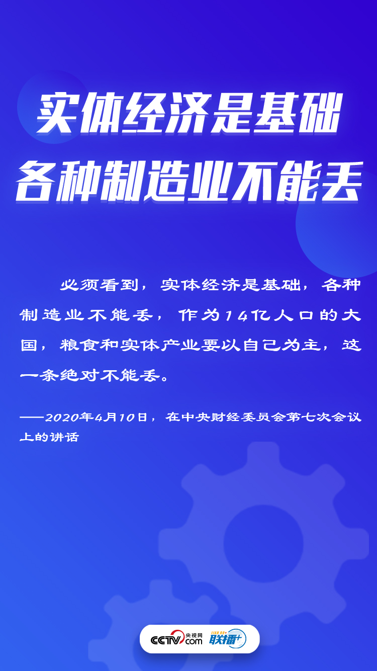 當(dāng)今世界正經(jīng)歷百年未有之大變局,突如其來(lái)的新冠肺炎疫情對(duì)全世界是一次嚴(yán)峻考驗(yàn)。在此情況下,無(wú)論考察調(diào)研,還是重要會(huì)議,習(xí)近平總書記更加重視實(shí)體經(jīng)濟(jì)發(fā)展,多次在不同場(chǎng)合作出重要指示,為實(shí)體經(jīng)濟(jì)的發(fā)展指明方向。央視網(wǎng)《聯(lián)播+》特梳理總書記殷殷囑托,與您一起學(xué)習(xí)領(lǐng)悟。