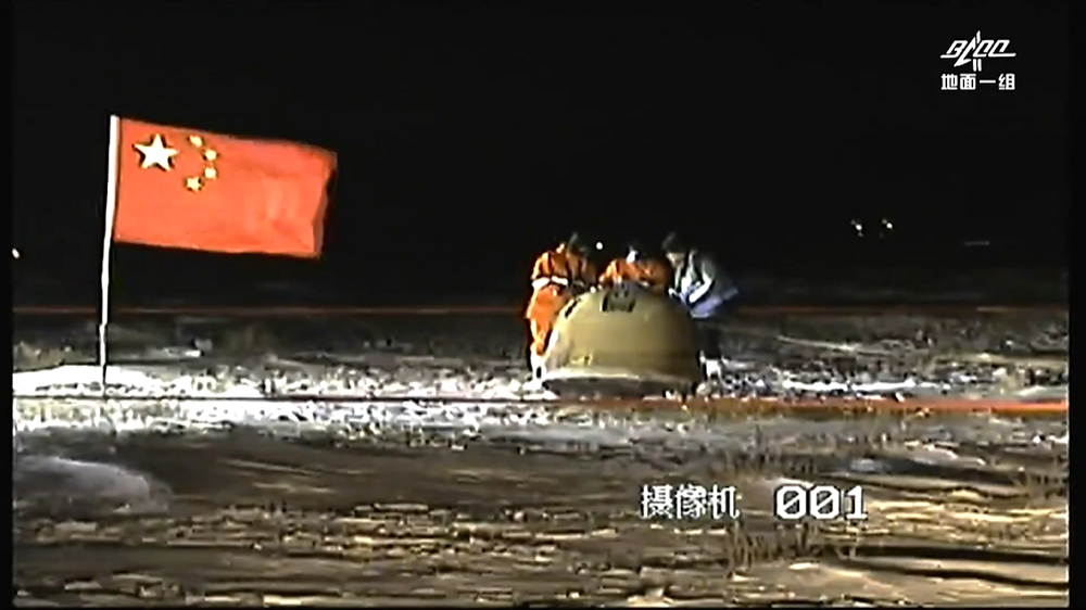 △紅外影像顯示一只小動(dòng)物從嫦娥五號(hào)返回器前跑過(guò)