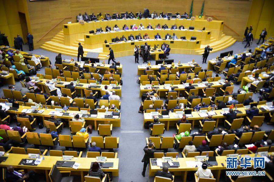 這是2月9日在埃塞俄比亞首都亞的斯亞貝巴拍攝的非盟首腦會(huì)議現(xiàn)場。新華社發(fā)(邁克爾攝)