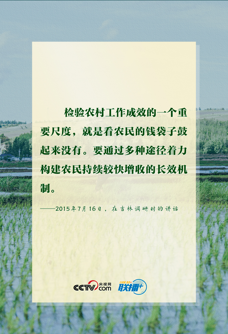 從黃土地走出的習(xí)近平總書記,對(duì)農(nóng)民有著特殊的情感。無(wú)論是國(guó)內(nèi)考察調(diào)研,還是主持召開農(nóng)村改革座談會(huì),總書記總是想方設(shè)法讓廣大農(nóng)民的錢袋子鼓起來(lái)。在總書記心中,檢驗(yàn)農(nóng)村工作成效的一個(gè)重要尺度,就是看農(nóng)民的錢袋子鼓起來(lái)沒(méi)有。