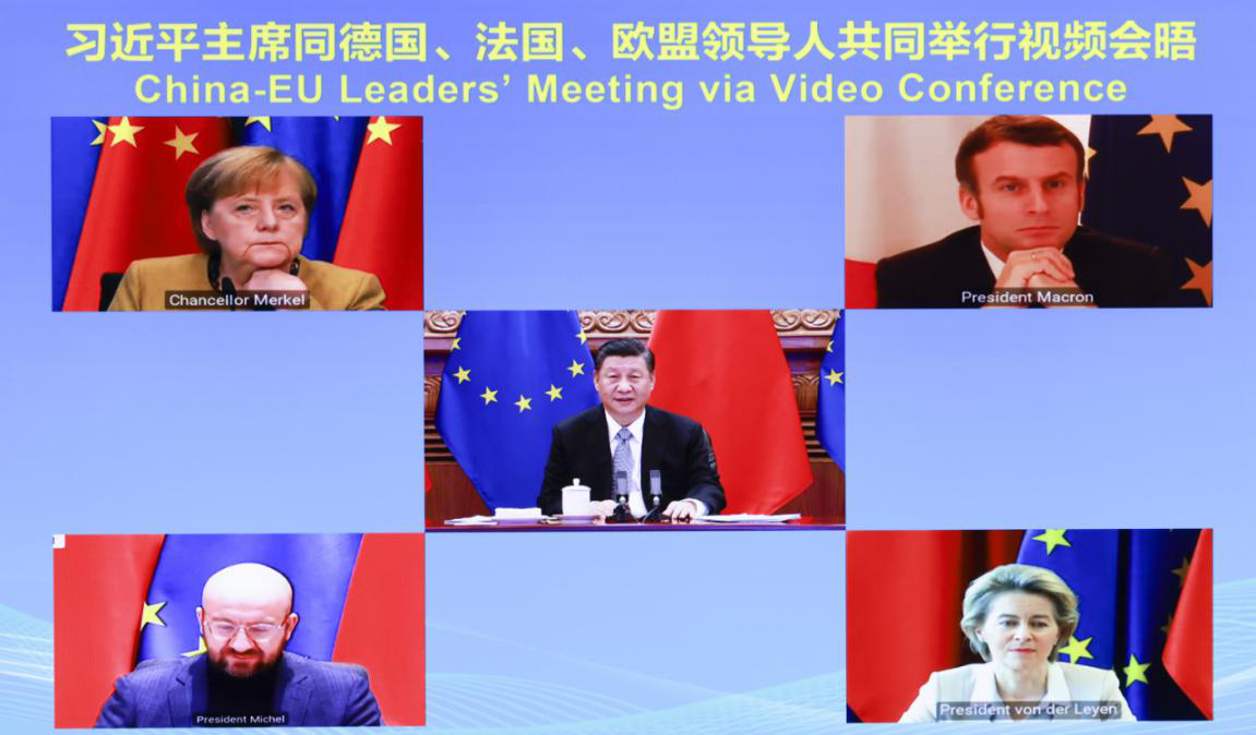 2020年12月30日晚,國家主席習近平同德國、法國、歐盟領導人共同舉行視頻會晤。