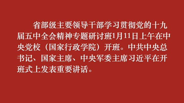 省部級(jí)主要領(lǐng)導(dǎo)干部學(xué)習(xí)貫徹黨的十九屆五中全會(huì)精神專(zhuān)題研討班1月11日上午在中央黨校(國(guó)家行政學(xué)院)開(kāi)班。中共中央總書(shū)記、國(guó)家主席、中央軍委主席習(xí)近平在開(kāi)班式上發(fā)表重要講話。