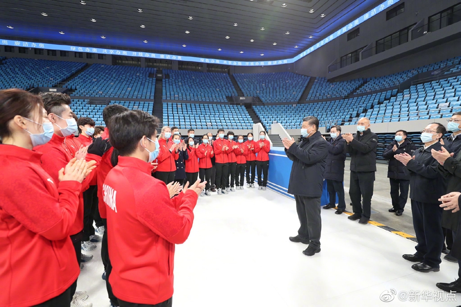 習近平總書記18日在北京考察冬奧會、冬殘奧會籌辦工作。在首都體育館,國家花樣滑冰隊、短道速滑隊的運動員、教練員們向總書記匯報了訓練備戰(zhàn)情況,表達了勇奪金牌的信心。習近平說,黨中央很關心北京冬奧會、冬殘奧會籌辦和訓練備戰(zhàn)工作,黨和人民給予了強大的物質和精神支持。這次來,看到大家盡心盡力,籌辦工作進展順利,訓練備戰(zhàn)效果明顯,我感到很欣慰,我對辦好這一屆盛會充滿信心。(文字記者:張曉松、朱基釵 攝影記者:鞠鵬、王曄、姚大偉)