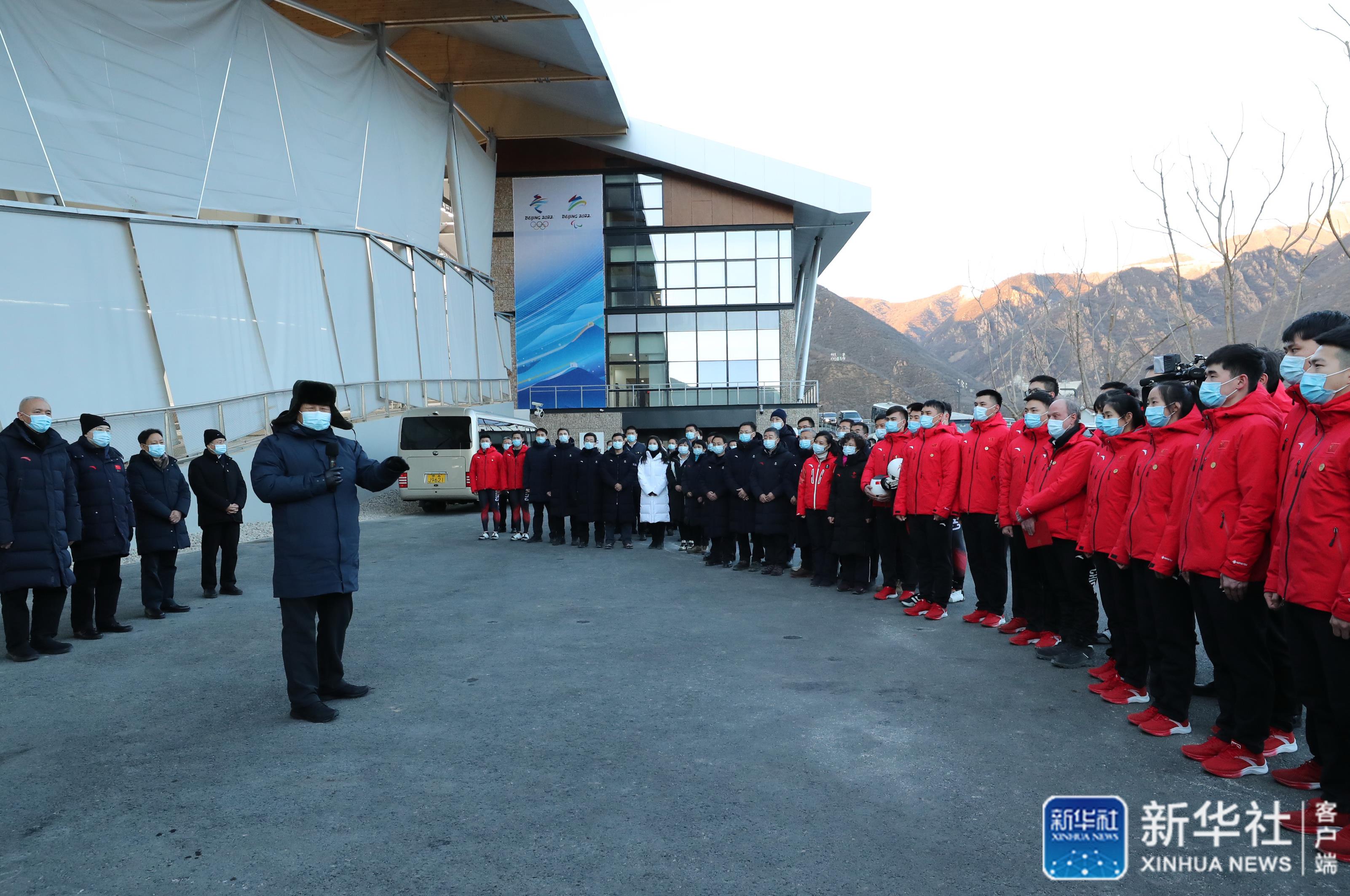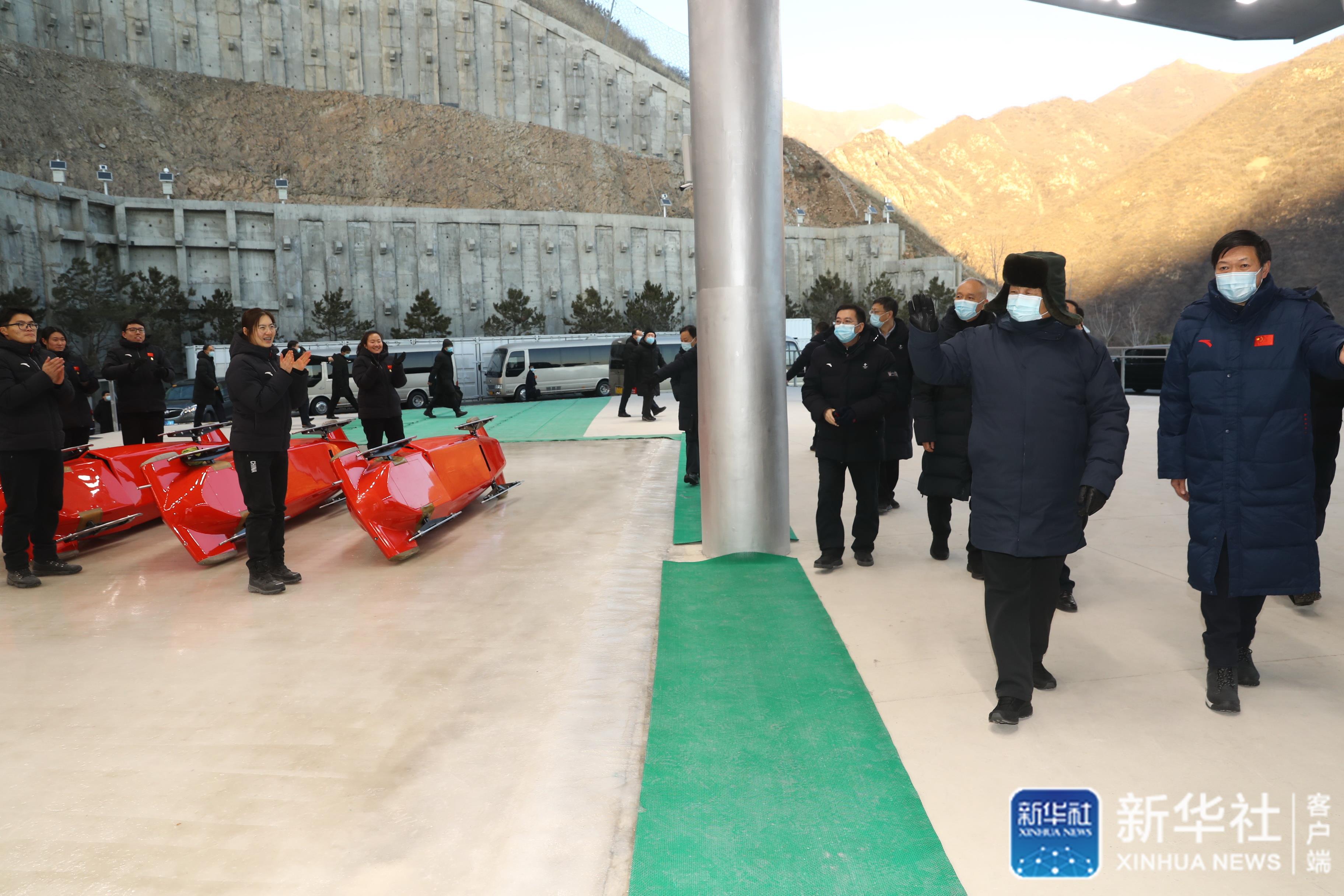 ↑1月18日至20日,中共中央總書記、國家主席、中央軍委主席習近平在北京、河北考察,并主持召開北京2022年冬奧會和冬殘奧會籌辦工作匯報會。這是18日下午,習近平在位于北京市延慶區(qū)的國家雪車雪橇中心,看望慰問國家雪車、雪橇隊運動員、教練員和延慶賽區(qū)運行保障團隊、建設(shè)者代表。 新華社記者 鞠鵬 攝