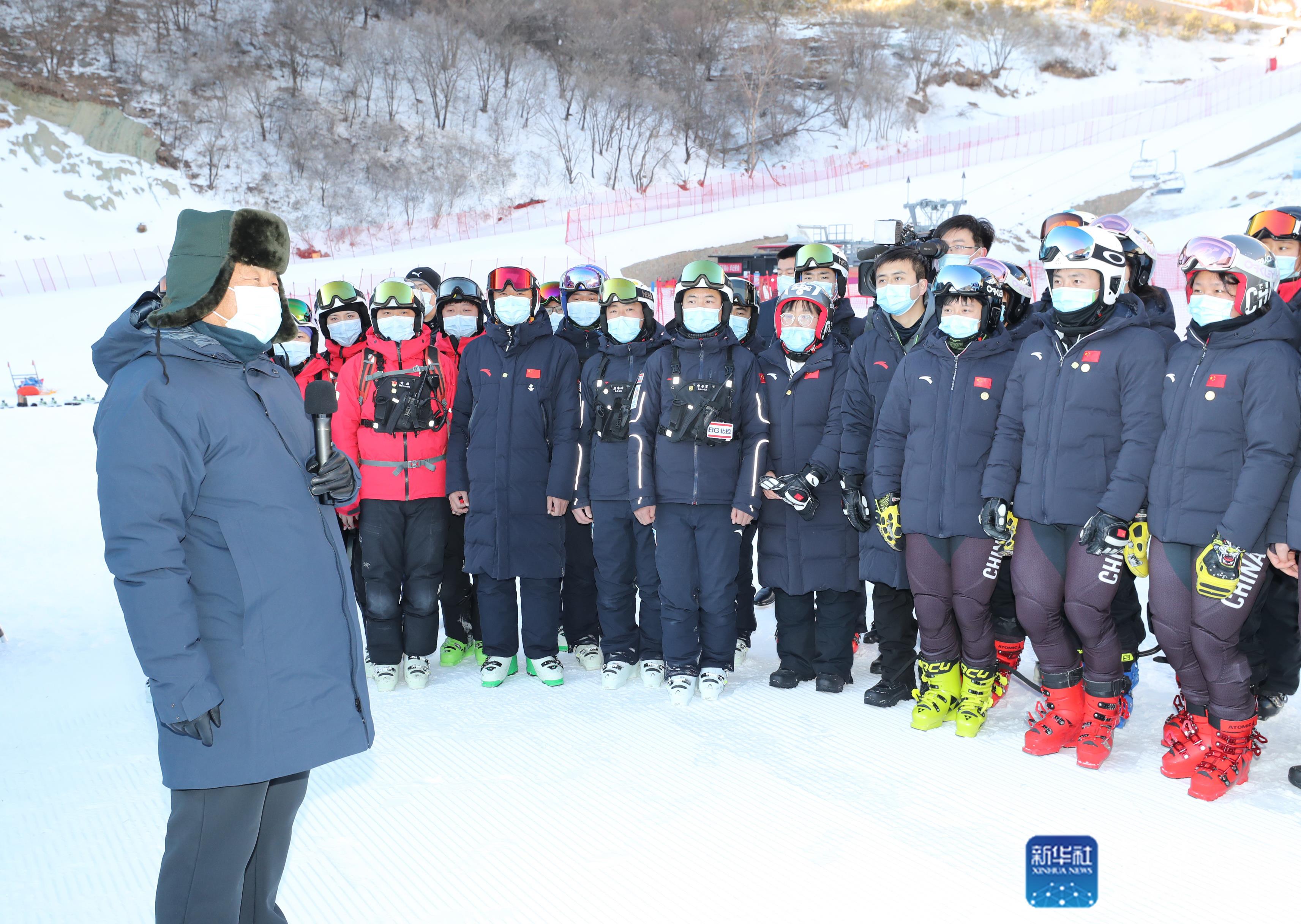 在競技結(jié)束區(qū),習近平觀看了中心防護網(wǎng)安裝、雪道巡查、運動員救援等賽場保障工作演示和高山滑雪競技比賽訓練情況。習近平指出,安全是重大體育賽事必須堅守的底線。高山滑雪是“勇敢者的運動”,要強化各方面安全保障,抓好管理團隊、救護力量和設(shè)施維護隊伍建設(shè),完善防疫、防火、防事故等風險防范措施,加強應(yīng)急演練,確保萬無一失。希望大家科學訓練,注意安全,保重身體,提高水平,發(fā)揮在“家門口”參賽優(yōu)勢,爭取在高山滑雪項目上實現(xiàn)獎牌零的突破。