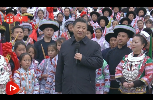2月3日下午,習(xí)近平總書(shū)記來(lái)到貴州畢節(jié)市黔西縣新仁苗族鄉(xiāng)化屋村考察調(diào)研。在村文化廣場(chǎng)上,少數(shù)民族群眾載歌載舞,歡度春節(jié)。