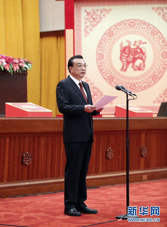 黨和國家領(lǐng)導(dǎo)人李克強、栗戰(zhàn)書、汪洋、王滬寧、趙樂際、韓正、王岐山等出席團拜會,李克強主持。