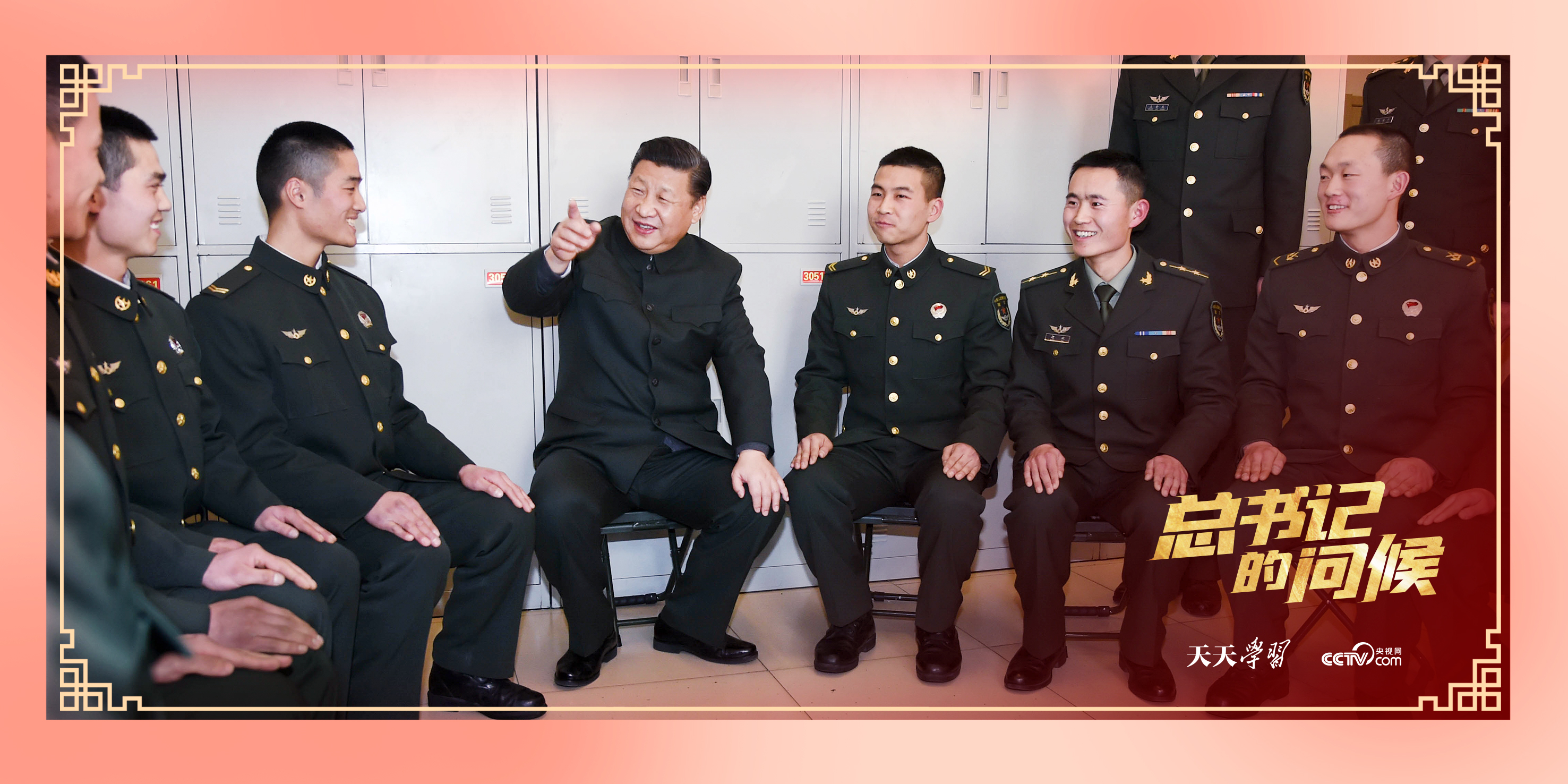 2017年1月,習(xí)近平主席視察駐張家口部隊(duì),他走進(jìn)戰(zhàn)士們的宿舍,摸摸被褥,看看衣物,關(guān)切地詢問戰(zhàn)士們能不能洗上熱水澡、晚上宿舍冷不冷、過節(jié)準(zhǔn)備得怎么樣。戰(zhàn)士們唱起《“四有”標(biāo)準(zhǔn)立起來》,習(xí)近平主席帶頭給戰(zhàn)士們鼓掌,與大家圍坐在一起親切交談。
