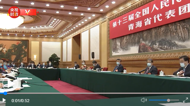 ↑ 3月7日,中共中央總書記、國家主席、中央軍委主席習(xí)近平參加十三屆全國人大四次會議青海代表團(tuán)的審議。新華社記者李學(xué)仁攝