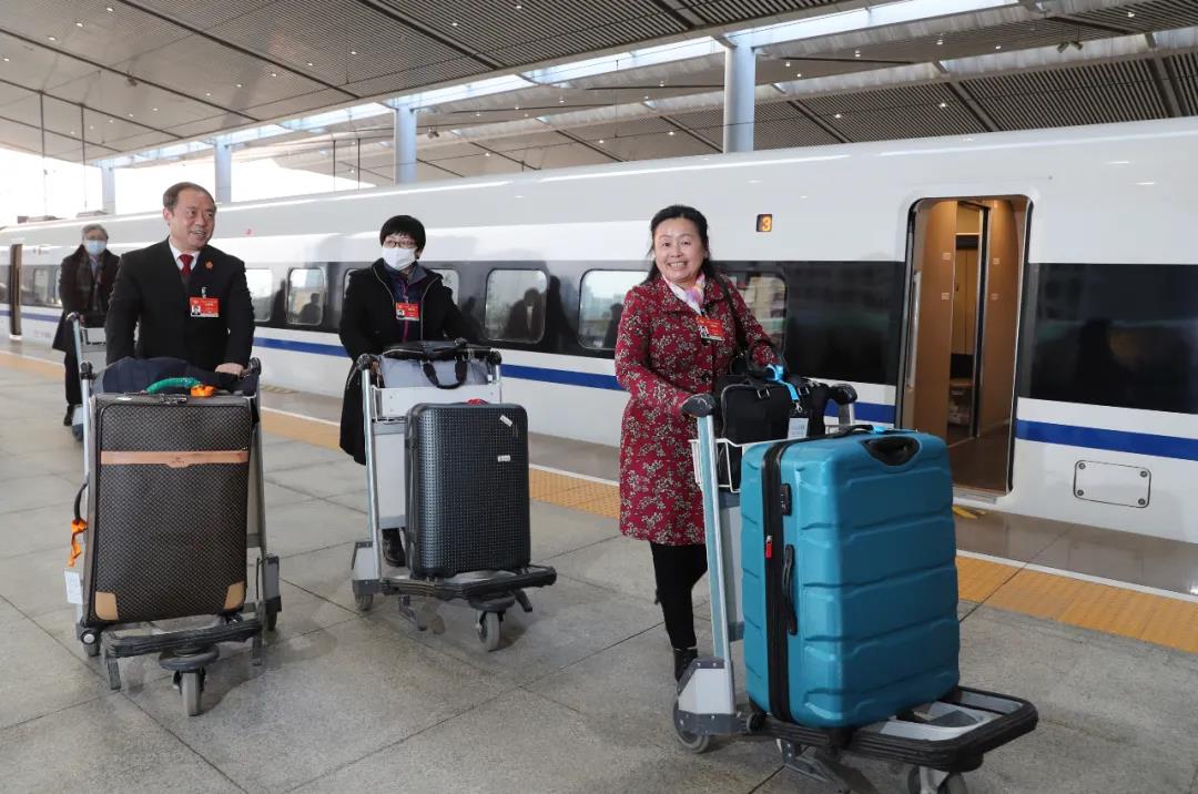 3月11日晚,出席全國(guó)政協(xié)十三屆四次會(huì)議的住陜?nèi)珖?guó)政協(xié)委員,從北京乘坐高鐵回到西安。