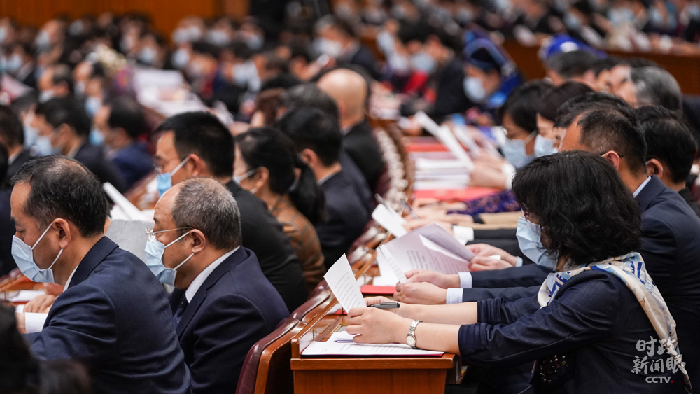 △十三屆全國人大四次會議表決通過關(guān)于“十四五”規(guī)劃綱要的決議。(總臺央視記者王哈男拍攝)