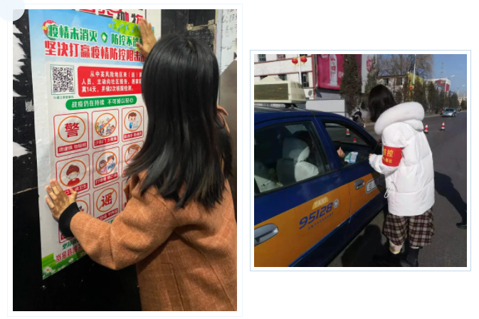 協(xié)助社區(qū)工作人員開展返鄉(xiāng)人員信息登記、查看健康碼、測量體溫,為進(jìn)出人員分發(fā)口罩、排查登記;深入醫(yī)院等公共場所,耐心宣講防疫知識,引導(dǎo)居民做好自我防護(hù);將防疫小知識制作成手冊,融入文字、圖片等多種元素,發(fā)放給當(dāng)?shù)鼐用?,廣泛宣傳防疫知識……同學(xué)們的身影忙碌于15個省份44個地市。