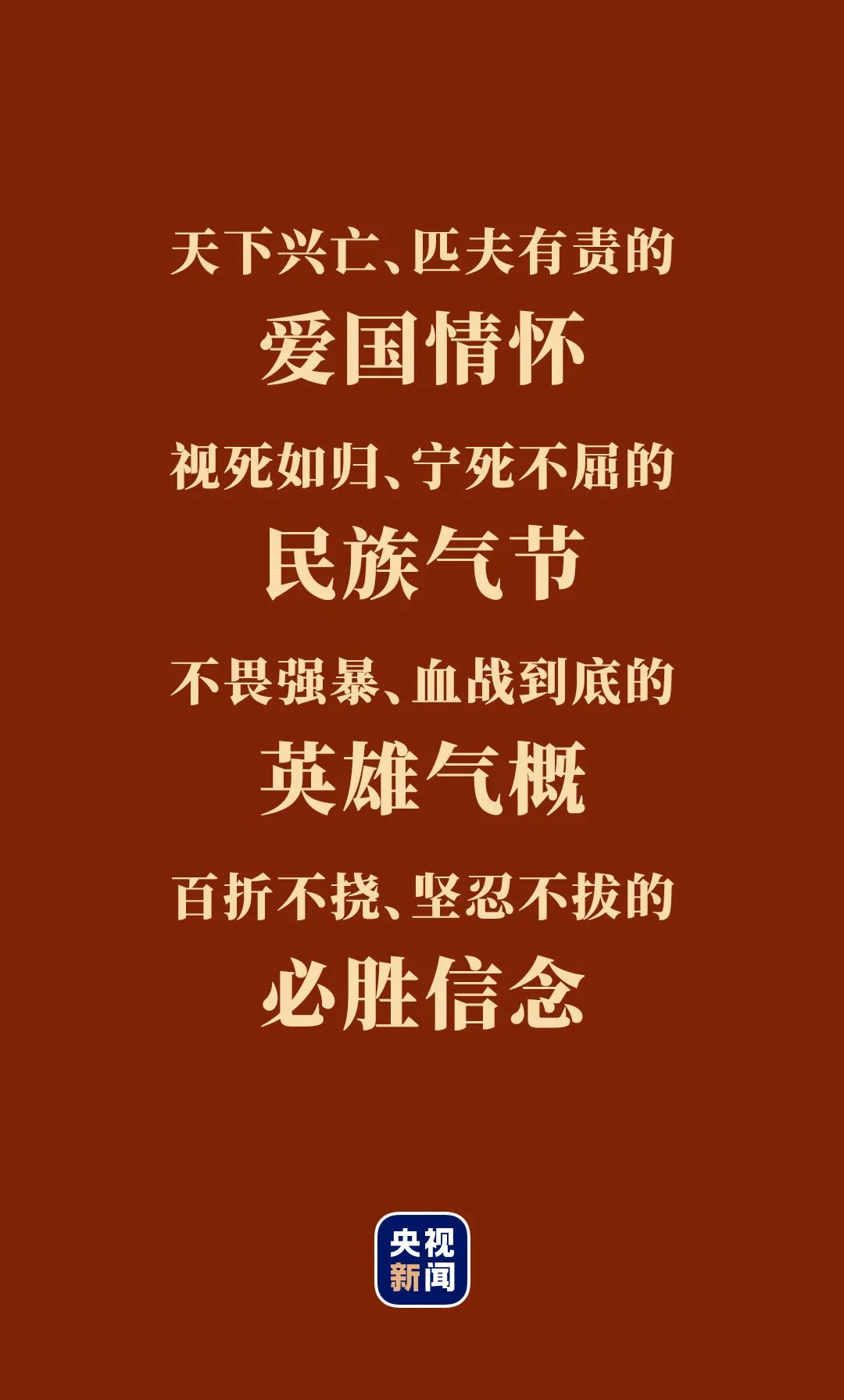 鑒往事,知來者。繼承和弘揚(yáng)偉大抗戰(zhàn)精神,以越是艱險越向前的大無畏氣概,奮勇搏擊、迎難而上、勇于斗爭,我們必將在戰(zhàn)勝各種風(fēng)險挑戰(zhàn)中書寫中華民族偉大復(fù)興的新篇章。