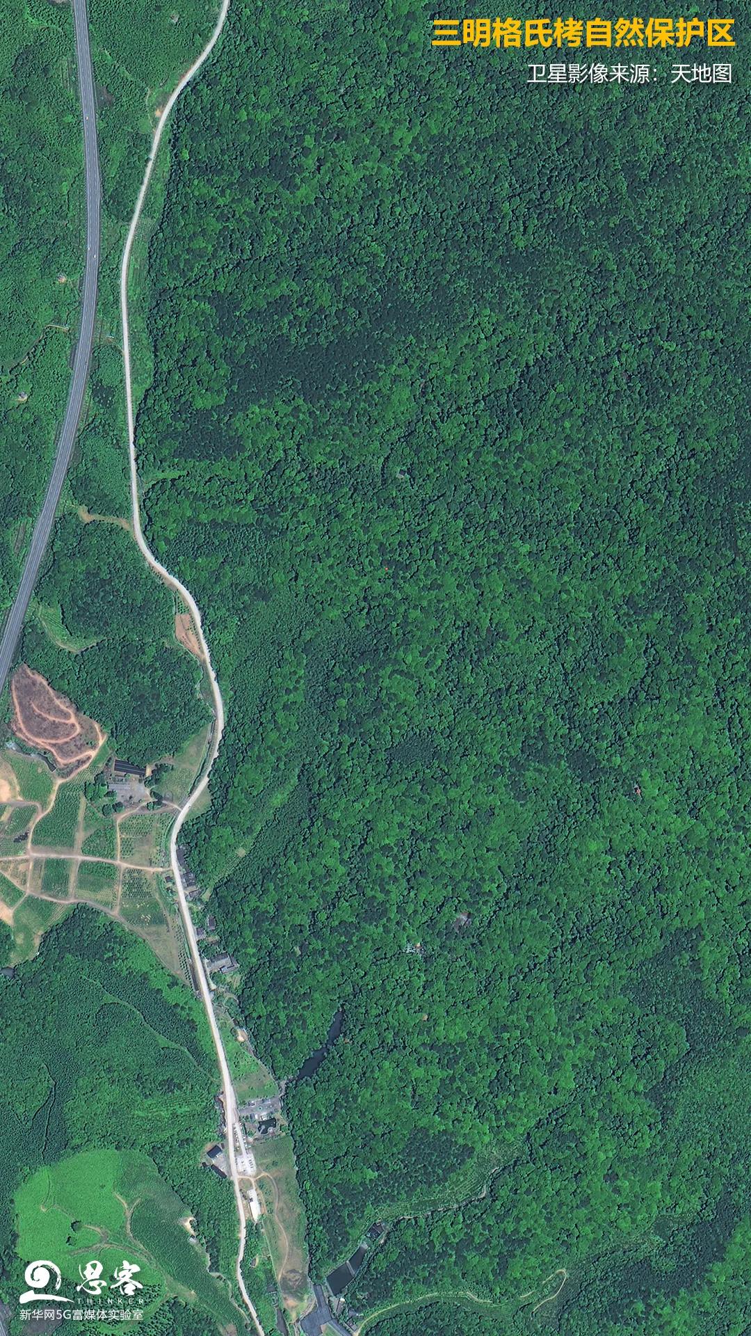 ▲三明格氏栲自然保護區(qū)。衛(wèi)星影像來源:天地圖