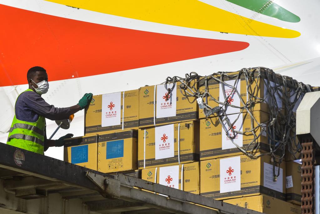 3月30日,工作人員在埃塞俄比亞亞的斯亞貝巴博萊國際機場卸載中國政府援助的疫苗。