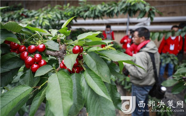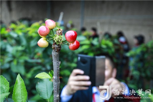在櫻桃棚內(nèi),紅色的櫻桃一簇一簇簇?fù)碓跇渖希诰G油油的樹葉間顯得嬌艷欲滴。路寶告訴記者,子長的櫻桃可以趕在其他產(chǎn)地的櫻桃未上市前售賣,因此市場行情好,加上保存期長,適合現(xiàn)代物流的發(fā)展,從而產(chǎn)生了比較好的收益。“我們這個(gè)櫻桃可以在其他櫻桃還沒有上市的時(shí)候,借助現(xiàn)代物流賣到全國各地,甚至可以賣到櫻桃的主產(chǎn)區(qū)去。”