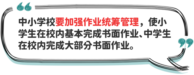 四、防止學業(yè)過重擠占睡眠時間。中小學校要提升課堂教學實效,加強作業(yè)統(tǒng)籌管理,嚴格按照有關規(guī)定要求,合理調(diào)控學生書面作業(yè)總量,指導學生充分利用自習課或課后服務時間,使小學生在校內(nèi)基本完成書面作業(yè)、中學生在校內(nèi)完成大部分書面作業(yè),避免學生回家后作業(yè)時間過長,擠占正常睡眠時間。校外培訓機構(gòu)培訓結(jié)束時間不得晚于20:30,不得以課前預習、課后鞏固、作業(yè)練習、微信群打卡等任何形式布置作業(yè)。