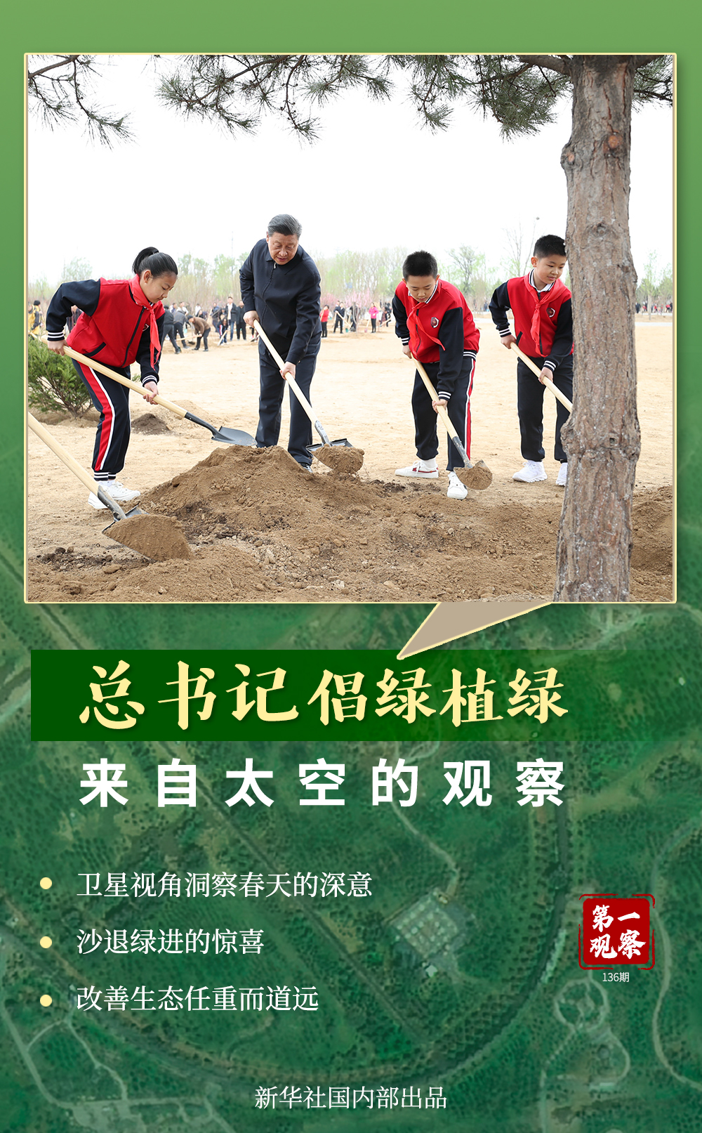 讓我們跟隨衛(wèi)星視角,感受植樹區(qū)域的變化。