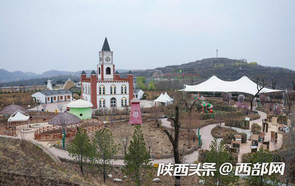 站在南溝村生態(tài)園最高處的觀景臺俯瞰景區(qū),紅色小樓錯落有序、旁邊水庫綠水盈盈、遠(yuǎn)處山峰層層疊疊、成片的蘋果園劃出整齊的曲線,五顏六色的游樂設(shè)施裝點著黃土高原,讓人驚嘆山溝溝里竟然還有這樣養(yǎng)眼的好去處。