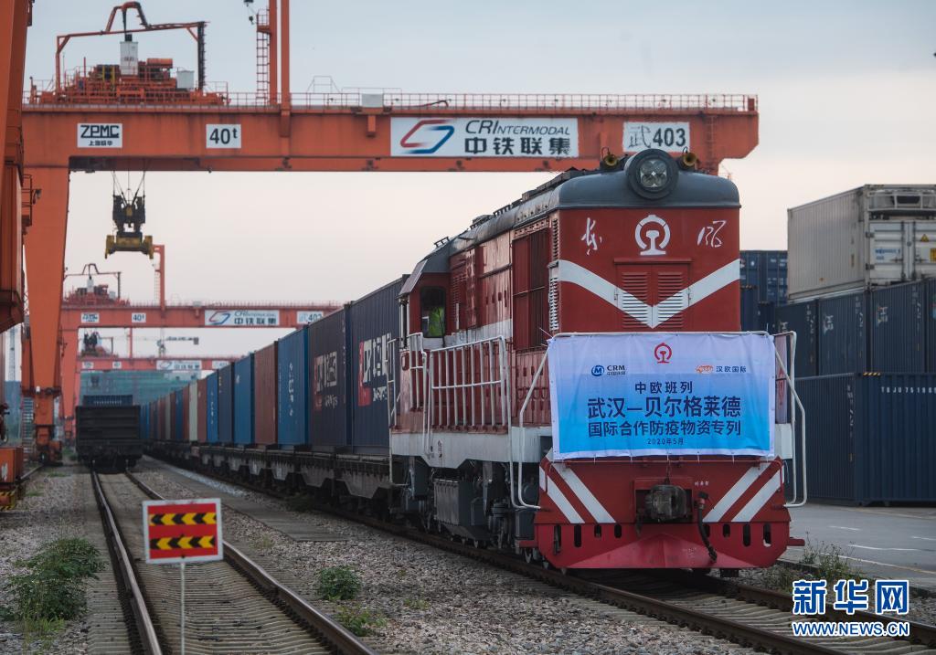 2020年5月9日,開(kāi)往塞爾維亞貝爾格萊德的中歐班列(武漢)準(zhǔn)備從吳家山站駛出,該班列滿載3500立方米、294.42噸國(guó)際合作防疫物資,支援塞爾維亞及周邊國(guó)家抗擊新冠肺炎疫情。新華社記者 肖藝九 攝