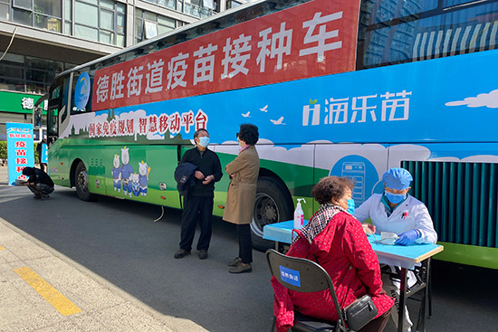 4月1日,德勝街道成立移動(dòng)接種專班。兩輛接種車“分兵”兩路,分別覆蓋老年人居多的社區(qū)和轄區(qū)內(nèi)商務(wù)樓宇。“以接種車為中心,等候、登記、接種、留觀分區(qū)進(jìn)行。每天每輛車儲(chǔ)備疫苗600劑左右,采取集中安排、散發(fā)預(yù)約的靈活方式,快速高效。”劉宏宇說。