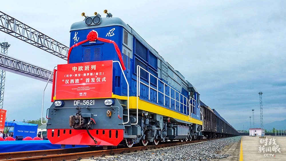 △2021年3月31日,首列43車滿載1100余噸食品、精密儀器、日用百貨等出口商品的集裝箱,搭乘中歐班列“漢西歐”列車從漢中出發(fā),最終抵達(dá)鹿特丹及莫斯科。(圖/視覺中國(guó))
