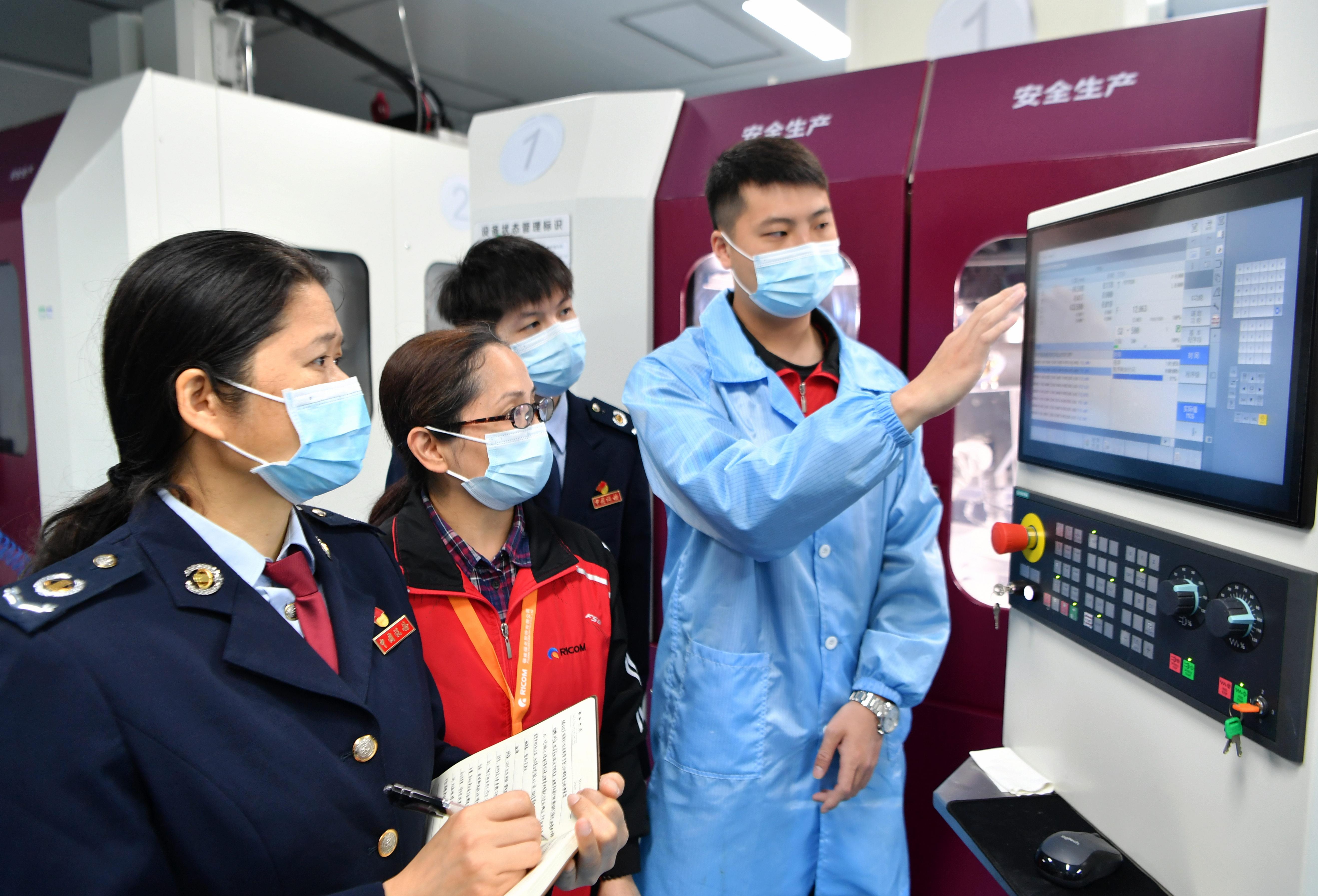 4月14日,在福建福光股份有限公司生產(chǎn)車間,福州經(jīng)濟技術(shù)開發(fā)區(qū)稅務(wù)局的稅收專家團隊將企業(yè)的基本情況、享受稅收優(yōu)惠情況等登記造冊。新華社記者 魏培全 攝